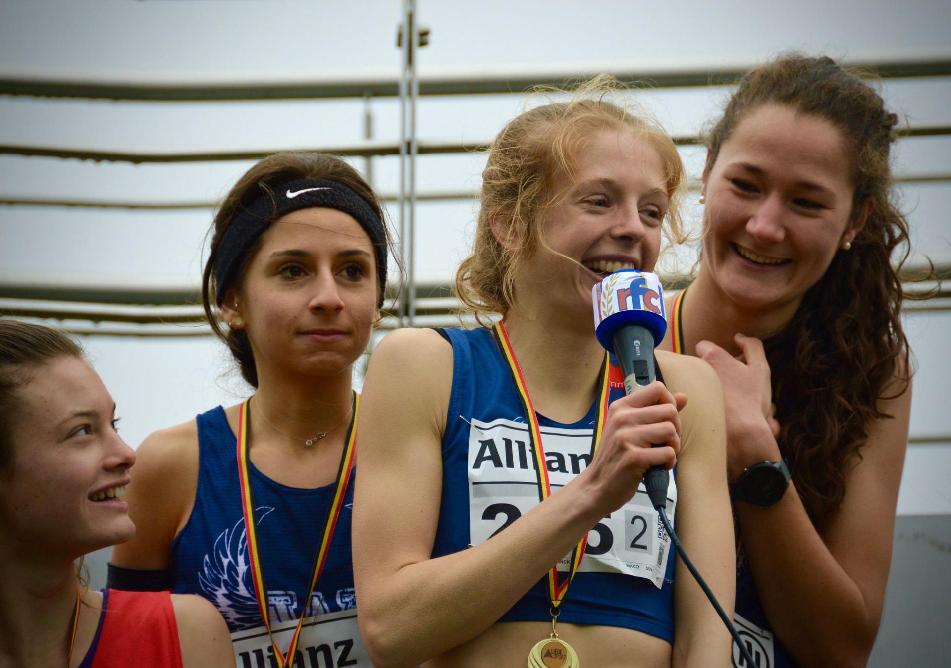 La première course de la journée concernait les dames et le simple fait d'évoquer la participation de Chloé Herbiet positionnait clairement le club du WACO favori sur le papier. Pour l'accompagner, Elise Coosemans, actuelle leader du classement général des cross courts avec trois victoires en autant de manches disputées, et Corentine Franckart également en tête au classement des cross longs notamment grâce à son succès à Spa. En face, le RFCL était le plus sérieux candidat pour déjouer les plans de la bande à Thomas Vandormael. Et si on s'attendait à voir Marie Vandormael, deuxième à Spa, l'équipe Liégeoise était plutôt composée de la prometteuse Caroline Baudinet, de Laurine Henrottin et de Florine Delrez. Les deux dernières citées qui furent respectivement médaillées d'argent et de bronze au championnat provincial de cross court juste derrière Elise Coosemans. Il y avait donc aussi de la revanche dans l'air... C'est Elise Coosemans et Caroline Baudinet qui ouvraient le bal à 12h30 pour le premier relai. Une distance de 1500m à parcourir sur un tracé plutôt gras mais certainement moins technique que celui de Malmedy. A ce petit jeu, c'est Caroline Baudinet qui a surpris la concurrence et qui a pu donner son témoin en première position à Laurine Henrottin. De quoi offrir aux spectateurs neutres un peu de suspense. Mais c'était sans compter sur le feu follet Corentine Franckart qui a littéralement avalé ses 2494 mètres. La warémienne d'adoption semble retrouver toute sa superbe et ne cesse de monter en puissance durant cette saison de cross-country. Dans son style de course très « princesse » qui ne veut pas se salir, elle a opéré une belle remonté pour offrir le témoin à Chloé Herbiet avec quelques mètres d'avance sur sa plus proche poursuivante. Cette dernière, d'un tout autre standing, n'avait plus qu'à terminer le travail sans forcer son talent. Finalement, les scolaires de Herve créèrent la sensation en venant se classer deuxièmes au scratch puisque Florine Delrez n'a pu résister aux assauts d'Emilie Koll. La mauvaise opération du jour concerne les athlètes des H-F, Léa Scheppers, Charlotte Vieilvoye et Cassandra Tsagkas toutes absentes.